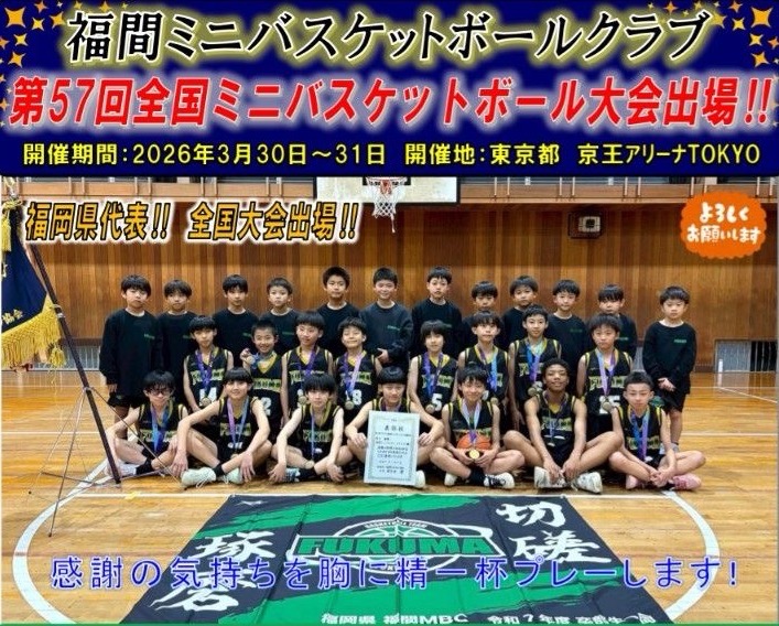 福間ミニバスケットボールクラブ男子|第57回全国ミニバスケットボール大会 遠征費用寄付金のお願い